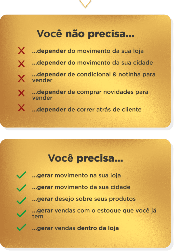 Se você é dona de loja e não aguenta mais ver a sua loja parada, o seu estoque cheio, a sua equipe desmotivada, e deseja fazer picos de vendas como nunca viu antes, esse curso é pra você! Independente do tamanho da sua cidade, da sua estrutura e da sua equipe!